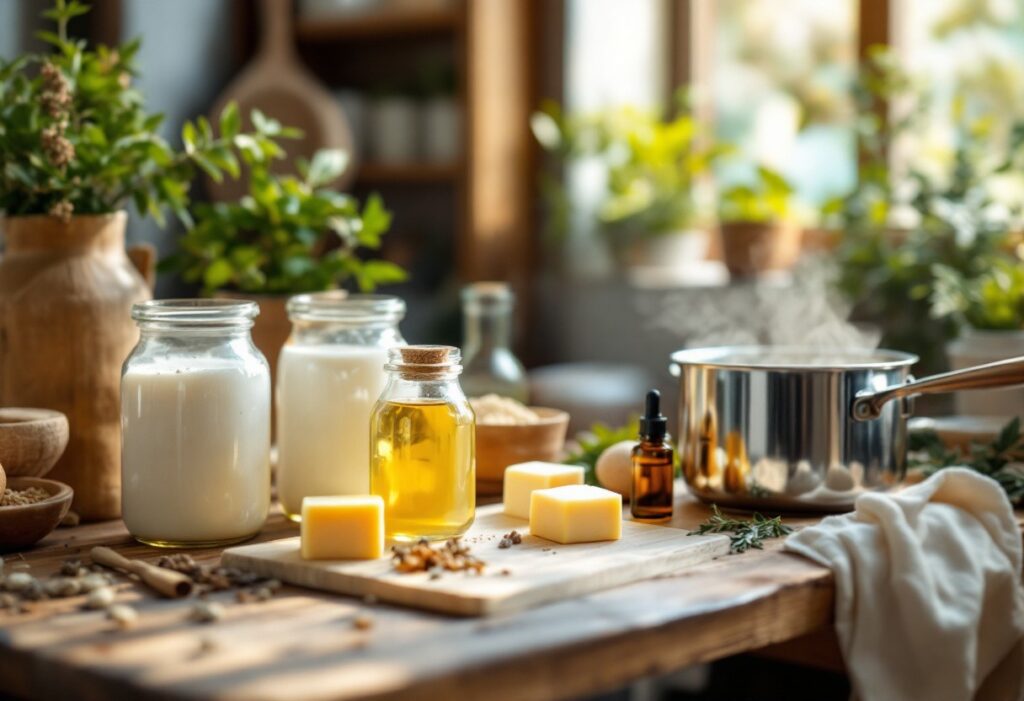 Les huiles végétales sont à la base de n’importe quelle recette de savon. Les favoris incluent souvent l’huile d’olive, connue pour sa douceur, ainsi que l’huile de coco, prisée pour sa capacité à générer une mousse riche et abondante. On peut également ajouter du beurre de karité, apprécié pour ses propriétés nourrissantes et hydratantes. Ces ingrédients apportent chacun leur lot de bienfaits et permettent d’adapter le savon aux besoins spécifiques de votre peau.